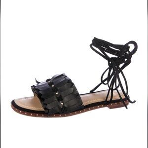 NWT Maje Funfiou Leather Gladiator Sandals Black Leather Suede 6 US 36 EU
