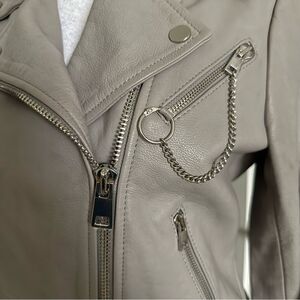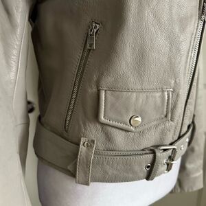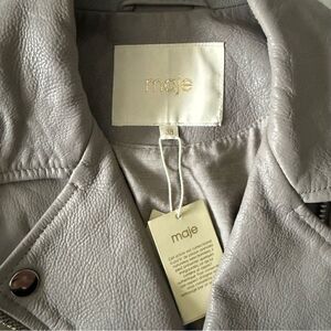 NWT Maje Powder Gray Bassung Belted Leather Motorcycle Jacket Size FR 38 US M