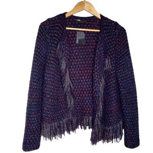 ✨NWT Maje Purple Tweed Open Front Metallic Fringe Mask Cardigan Size 2 or Medium