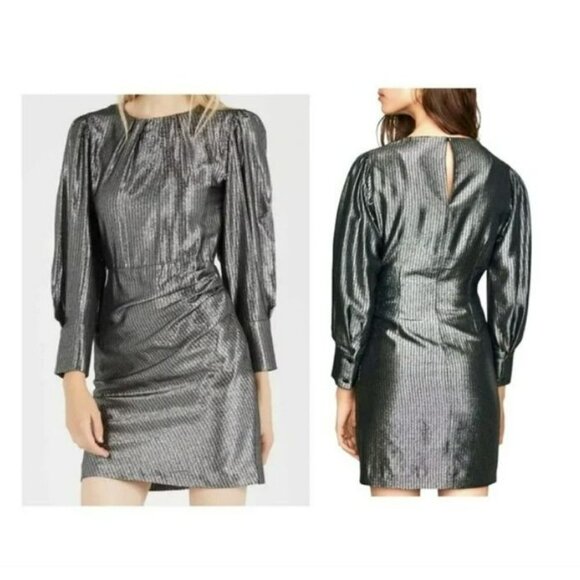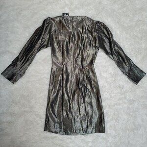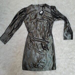 NWT Maje Ralery Mini Dress Argent Women's Striped Metallic Long Sleeve - Size 4