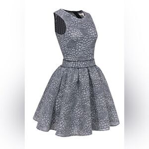 New Maje Reinatta Flared Jacquard Mini Dress Black White Sleeveless Sz M / 38