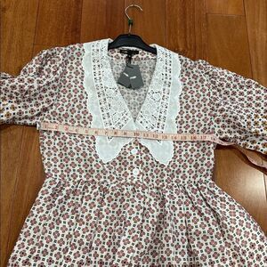 NWT Maje Romelange Geometric Print Linen removable Lace Collar Short Sleeve Dress size 40