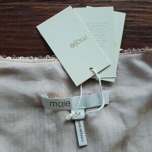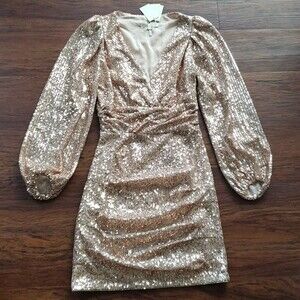 NWT Maje Womens Rose Gold Disco Short Sequined Deep V Evening Dress Size 34