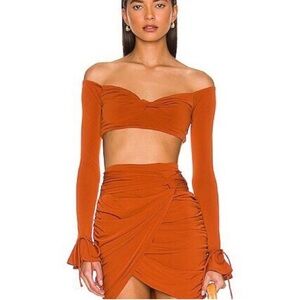 NWT Majorelle Destiny Crop Off Shoulder Top in Mahogany Brown, Size M