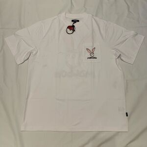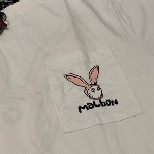NWT Malbon Golf Sz M Rabbit Pocket SS Logo T-shirt Round 100% Cotton white bunny