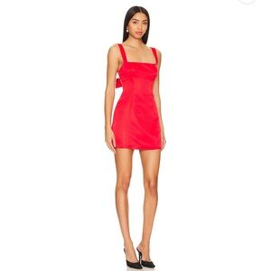 Brand new, never worn, with tags!!! red mini dress brand More To Come featuring a bow at the back — still for sale on Revolve website