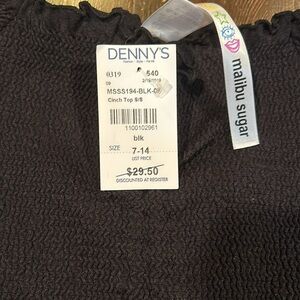 NWT Malibu Sugar Girl’s Black Top Size One Size