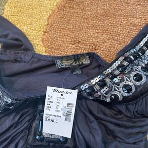 NWT Mandee Y2K Style Vintage Early 2000’s Charcoal Grey Beaded Ruched Tank Top S