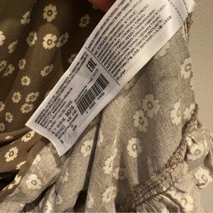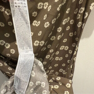 NWT- Mango Asymmetrical Ruffle Dress Green With Cream Flower One-Shoulder Size S
