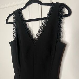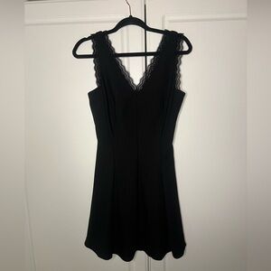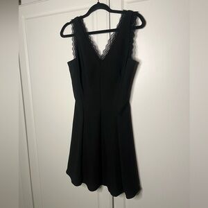 Black fit and flare dress. Side zip. Lace trim and small cutout in back. Very classic shape and little black dress. Size US 4