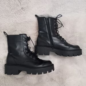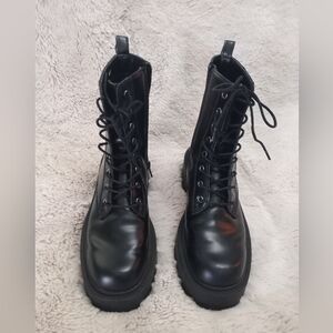 NWT Mango Classic Chunky Lug Soled Lace Up boots with Side Zipper for Easy Off and On, Classic, Shiny, Whimsigoth, Goth, Punk, Emo, Grunge Combat Boot, Comfy, Versatile, Festival, Bohemian,Boho Moto, Timeless, sz 38/8
