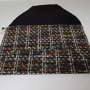 The envelope clutch purse does not have a handle/strap, making it easy to carry. Very light weight and very pretty.