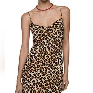NWT Mango Leopard Print Long Slip Midi Dress Medium