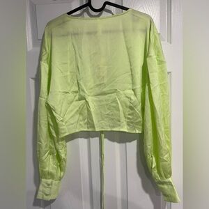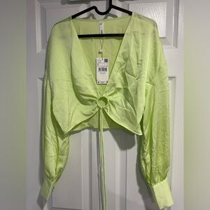Stylish light green blouse with a tie-front design. Perfect for casual outings. NWT. Size medium