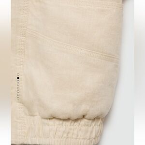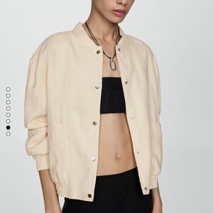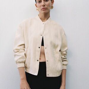 Stylish cream button-up jacket with a relaxed fit. Features front pockets and snap closures.