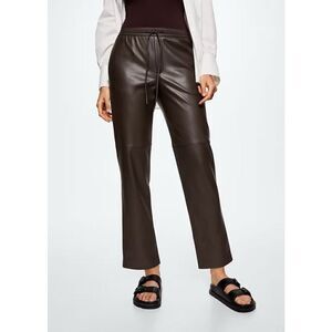 NWT Mango MNG Leather-effect elastic waist Slouchy Pants Brown Women’s Size XL