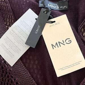 NWT Mango MNG Lurex openwork knit dress Burgundy Size Small