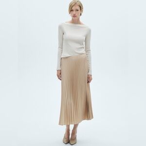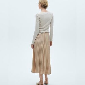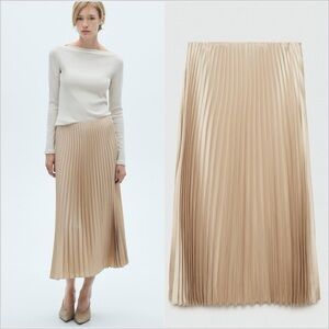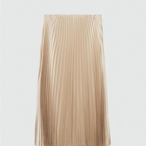 NWT Mango MNG Pleated Long Skirt Cream Champagne Size L Large