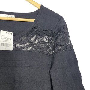 NWT Mango MNG Tumen Dress Black Knit Lace Detail W/ 3/4 Sleeves Size 12