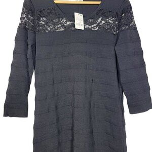 NWT Mango MNG Suit Tumen Dress Black Knit Lace Detail W/ 3/4 Sleeves Size 12