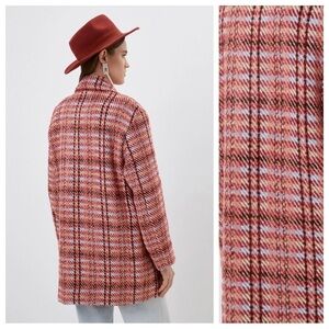 NWT. Mango Pink Checked Textured Short Coat. Size S.