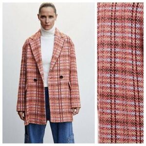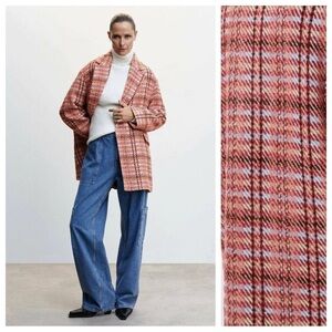 NWT. Mango Pink Checked Textured Short Coat with lapel collar, two side pockets without fastening, long sleeves, front buttons closure, lining. Size S. Ref. 37997111. Pit to pit 21,5" flat, shoulders 19", sleeves 23,5", length 31".