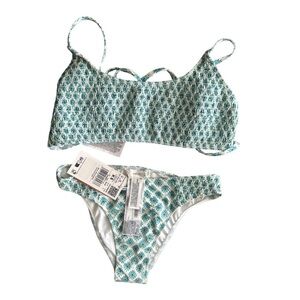Rounded neck. Foam filling. Removable foam. Thin straps. Bow closing on the back.