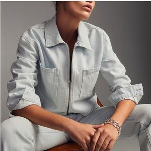 Mango denim jacket with a full zip front NWT. Features a classic collar and two front patch pockets. 100% cotton very soft, light weight great for spring. Has small spot on right arm (see photos) likely to come out in the wash.