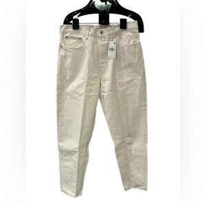 100% Cotton. Recycled cotton-blend fabric. Denim style cotton fabric. Mom-fit. High waist. Five pockets. Loops. Zip and one button fastening. Inseam 27.56 in.