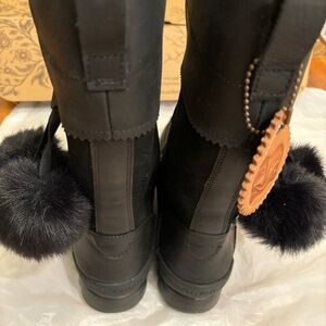 NWT black Manitobah waterproof Pacific tall lined boots with pom poms