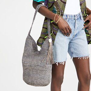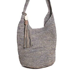 NWT Mar Y Sol Dove Gray Augusta Woven Raffia Shoulder Bag Tote Beach Bag