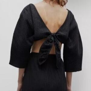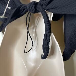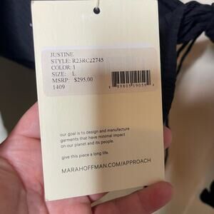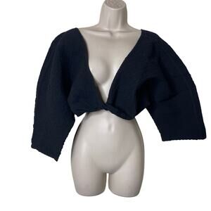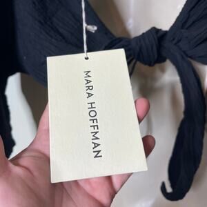 NWT Mara Hoffman Justine Twist-Front Cropped Blouse in Black sz L. New with tags. Mara Hoffman "Justine" blouse in a textured organic cotton fabric features a twisted front detail Can be worn on or off the shoulder Plunging V neckline 3/4 sleeves Cropped length Mid-back self-ties Organic cotton/elastane Do not iron Imported.