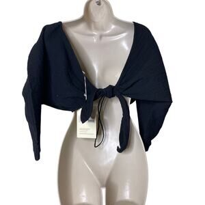 NWT Mara Hoffman Justine Twist-Front Cropped Blouse in Black sz L