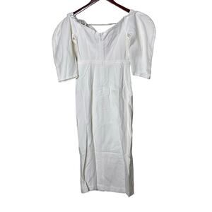 NWT Mara Hoffman Leonara off-the-shoulder TENCEL Lyocell linen-blend midi dress. New with tags. Mara Hoffman's 'Leonara' midi dress has a sculptural silhouette featuring an off-the-shoulder neckline and elegantly curved sleeves. It's made from a blend of TENCEL TM Lyocell and linen, so it feels soft and lightweight. Wear yours with lace-up sandals and a woven bag.