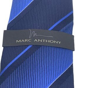 NWT Marc Anthony Men's Silk Tie Necktie 2 Tone Blue Diagonal Stripe