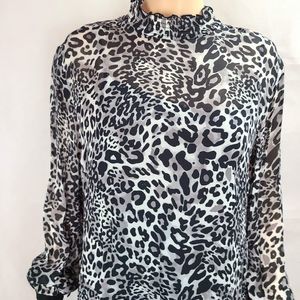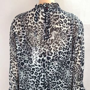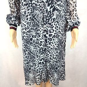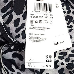 NWT Marc Cain Women's (12) Black & Gray Leopard Crepe Dress Slip Lining-$380