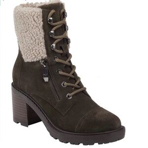 NWT Marc Fisher dark olive green suede leather Lansly combat bootie boot