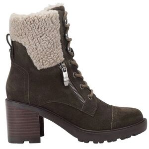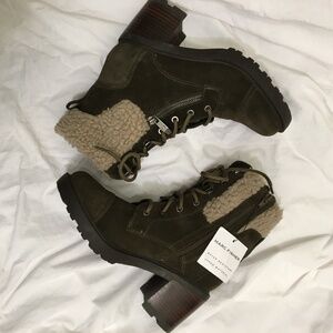 NWT Marc Fisher dark olive green suede leather Lansly combat bootie boot