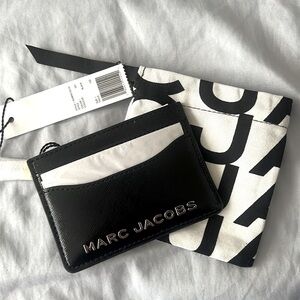 Brand new with tags Marc Jacobs card holder. Features black embossed leather as well as silver lettering. Includes one main centre pocket, 2 front and 2 back pockets. Comes with its dust bag.