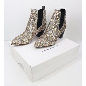 NWT Marc Jacobs Kim Sequin Chelsea Booties Embellished Block Heel Gold Silver 9