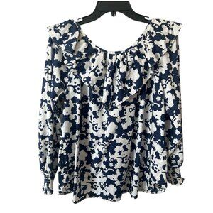 NWT Marc Jacobs Navy & White Floral Button Front Ruffled Collar Shirt Size 6