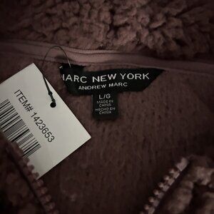 NWT Marc New York Burgundy Sherpa Zip Up Hoodie. Full zip, long sleeves, two front pockets and drawstring hood. Ribbed cuffs and hem. Faux fur body 100% Poly. Size L (24" PtP x 25" L x 25.5" L Sleeves - shoulder seam to end of cuff) In Excellent New Condition.