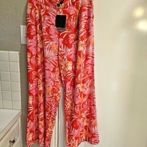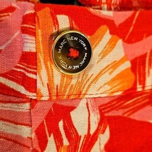 NWT Marc New York Linen Pull on Pant Elastic Waist Wide Leg Red Palm. Large