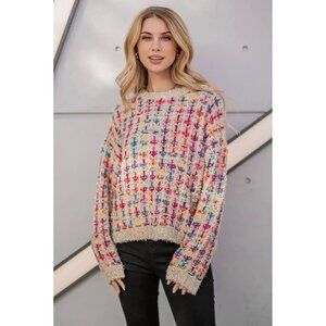 NWT Marc New York Womens Ivory Multi Tweed Metallic Basketweave Pullover Sweater