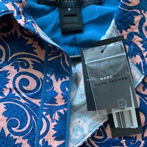 NWT Marc by Marc Jacobs Women 100% Silk Blouse Sz 2 Apricot Rose Blue Me…