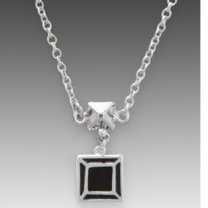 Simple and classic necklace that can be worn everyday. Color is silver/black. Comes with dust bag. I also have this in cream/gold if interested. Plated silver. necklace measures approx 9" in length.