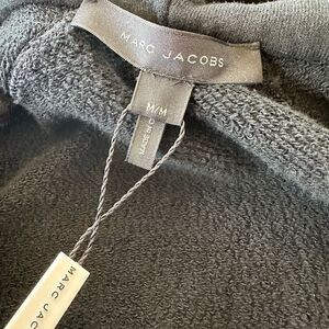 NWT Marc Jacobs black, pom-pom detail, hoodie size medium. Beautiful silver zipper detail. Perfect condition and all pom-poms are attached. The material is nice and thick and warm and the lining is super soft and cozy. The length is 26 inches, the waist is 42 inches, the best measures 42 inches, and the sleeve length is 28 inches.