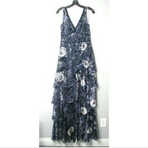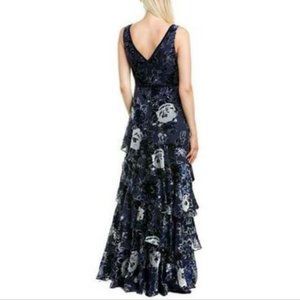 NWT Marchesa Notte Blue Floral Sleeveless Tiered Burnout Gown Dress 2