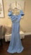 Step into elegance with this Marchesa Notte light blue off-shoulder evening gown (Size 8). This designer dress is brand new with tags and has never been altered.