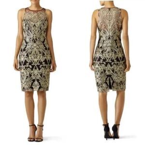 NWT Marchesa Notte Dress Formal Lace Golden Fiore Sheath Black Gold Sz 12